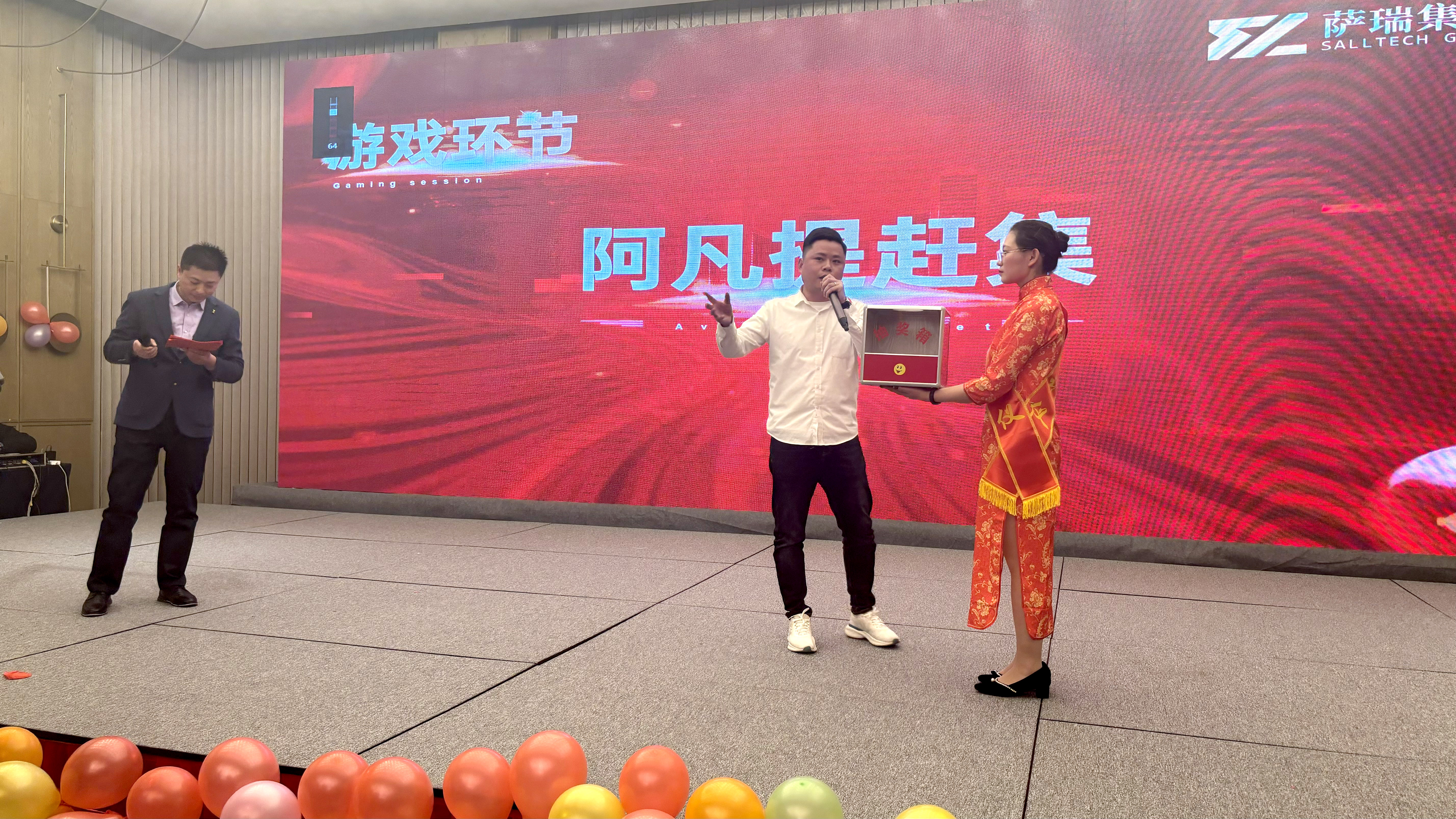 最后,员工文艺节目和多轮抽奖轮番开始。员工表演节目有歌曲《大花轿》、歌曲《稻香》、脱口秀、《lewin乐玩之歌》朗诵、《明天会更好》等,抽奖包括总监赠礼、神秘抽奖、三等奖、二等奖、一等奖等多轮。婉转动听的歌喉,幽默风趣的内容,整齐划一的节奏,充分展现了lewin乐玩员工的生活情趣和精神修养。丰厚有品的大礼,群情激奋的尖叫,歆羡祝福的目光,充分达到了鼓励和模范的效果。